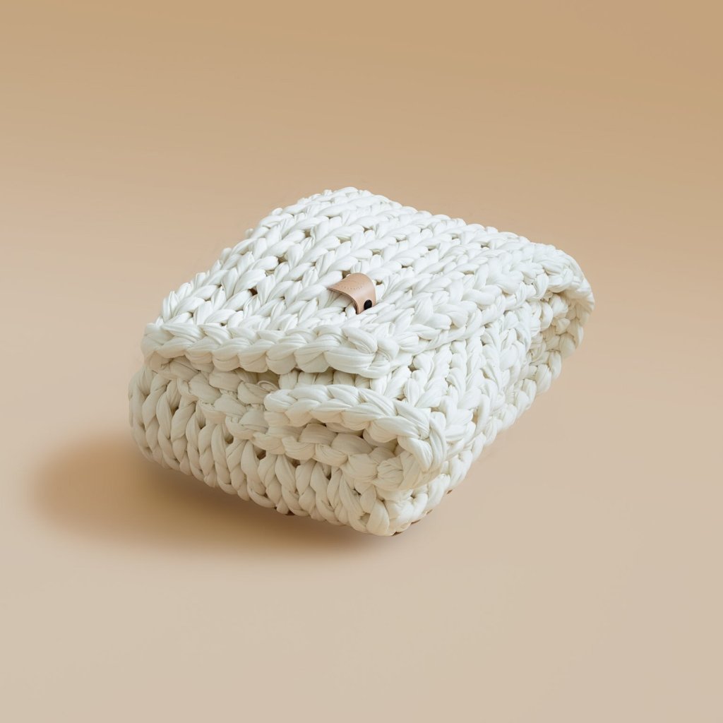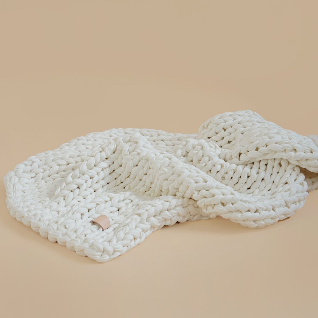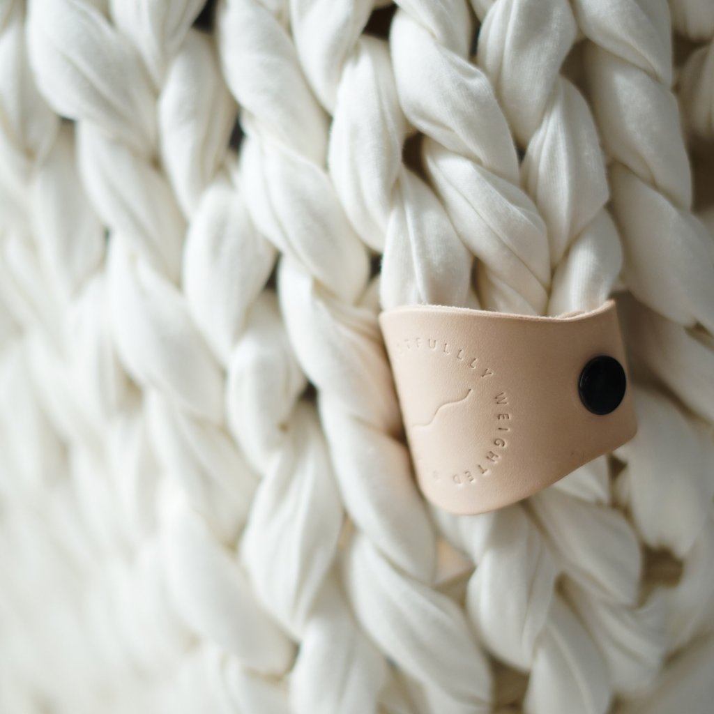 Tato smetanově bílá zátěžová deka je upletená ze 6 kilogramů jemné bavlněné příze. Je prodyšná, příjemná na dotek a neuvěřitelně uklidňující.